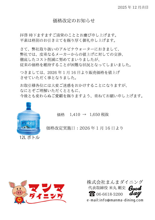 さて、弊社取り扱いのアルピナウォーターにおきまして、